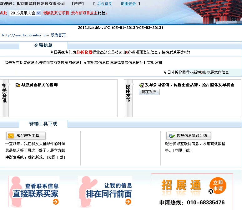2.對(duì)我們的會(huì)員,可以定期登錄查看在行業(yè)、專題下面表明要參觀、參展的人的信息,并和他們保持聯(lián)系